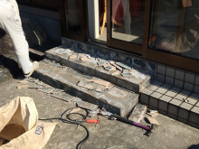 と、言うわけで本日は、玄関アプローチの階段拡張工事ですガッツガッツ