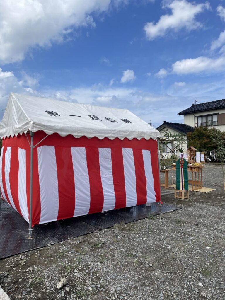 地鎮祭とは、その土地の神様に、この土地を使用すること許しを得る事です。