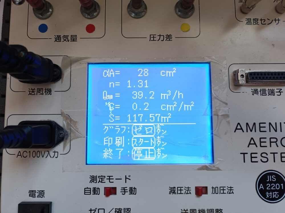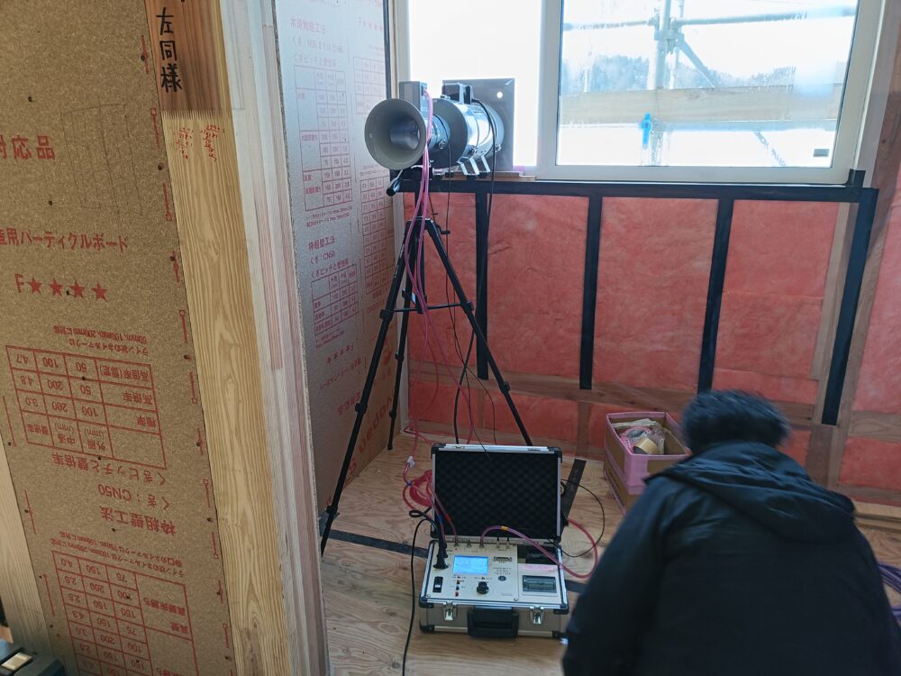 ここで、中間の気密測定が行われました。