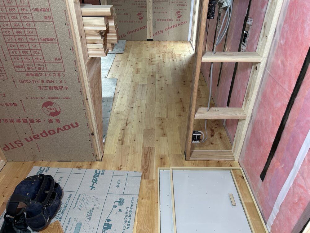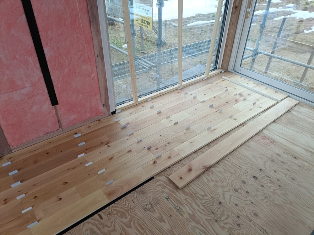 ↓無垢フローリングを張り終えた所です