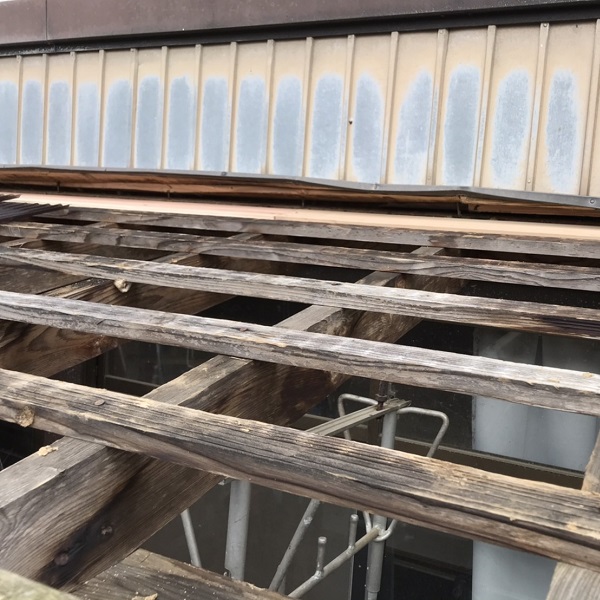 軒先はポリカが欠けており、木がむき出しになっていたので湿って苔が生えたようです。