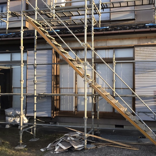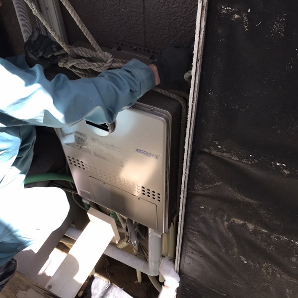 給湯機・エアコンの室外機・ガス、電気メーター、アルミ手摺等を外します。