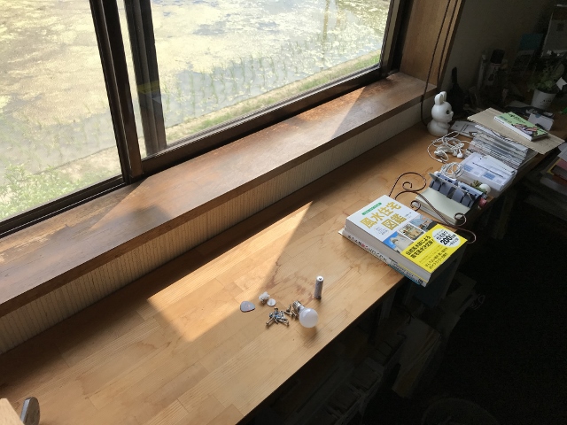 庇の影が小さくなり、窓の下端に光が射しこんできました。