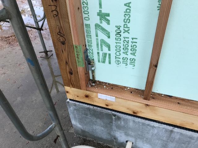 外回りは防水シートで囲っているので、外壁面についているホールダウン等の金物は写真も見てもらいます。