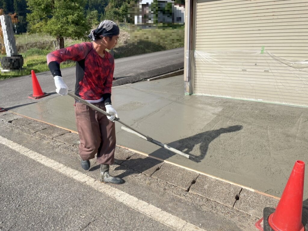 ↓コンクリートを打設したら、平らにしていきます