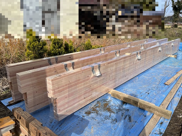 ↓そして、現場では以前ブログでも紹介しました大梁が到着しています