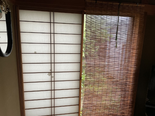 ↓そして、障子を張り替えた雪見障子をはめ込みます