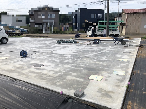 ↓ピンクのチョークで囲んである所は柱が立つ所です