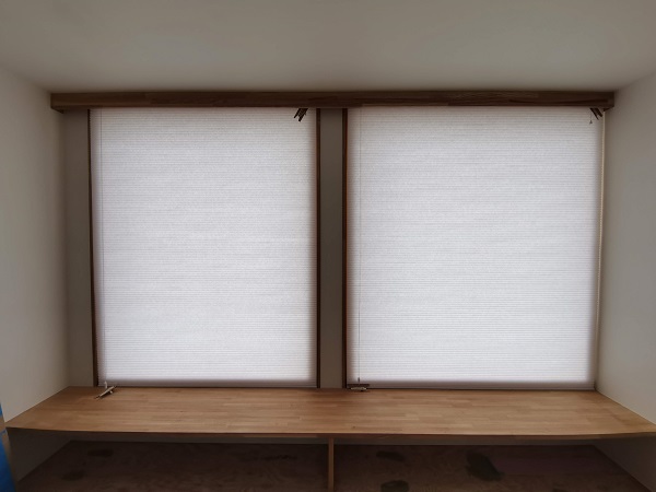 ↓南に面した部屋の窓には、ハニカムスクリーンを取り付けました