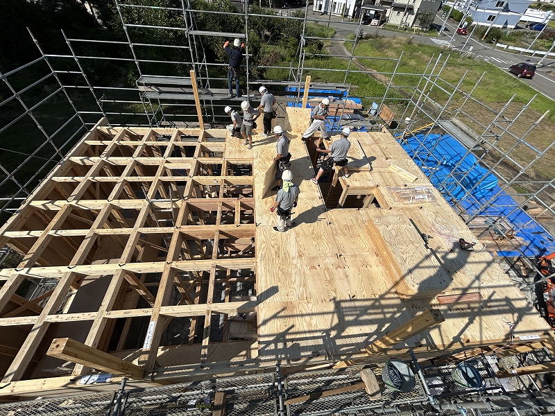 ↓9月は今年の新築工事、『岩上の家』の建て方がありました