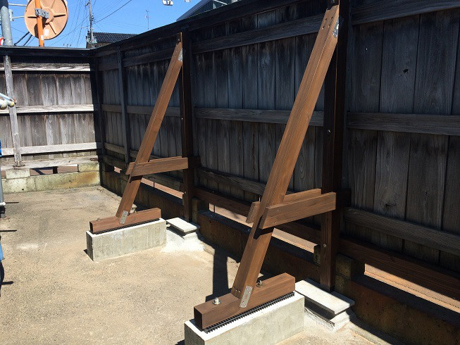 木製の塀なのですが、土台部分が腐食してしまい、いつ倒れてもおかしくない状態です泣泣汗
