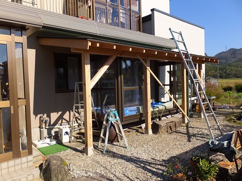 こちらの風除室に屋根を付けて、冬囲いをしまーす![]()
