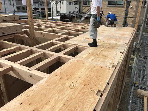 ↓お次は横架材(おうかざい:梁や胴差など水平に取り付ける材料)です