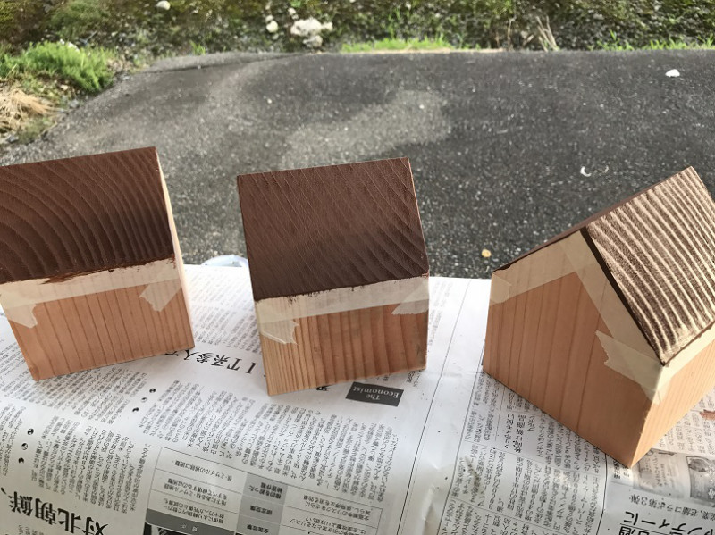 ↓角材をお家型に加工します
