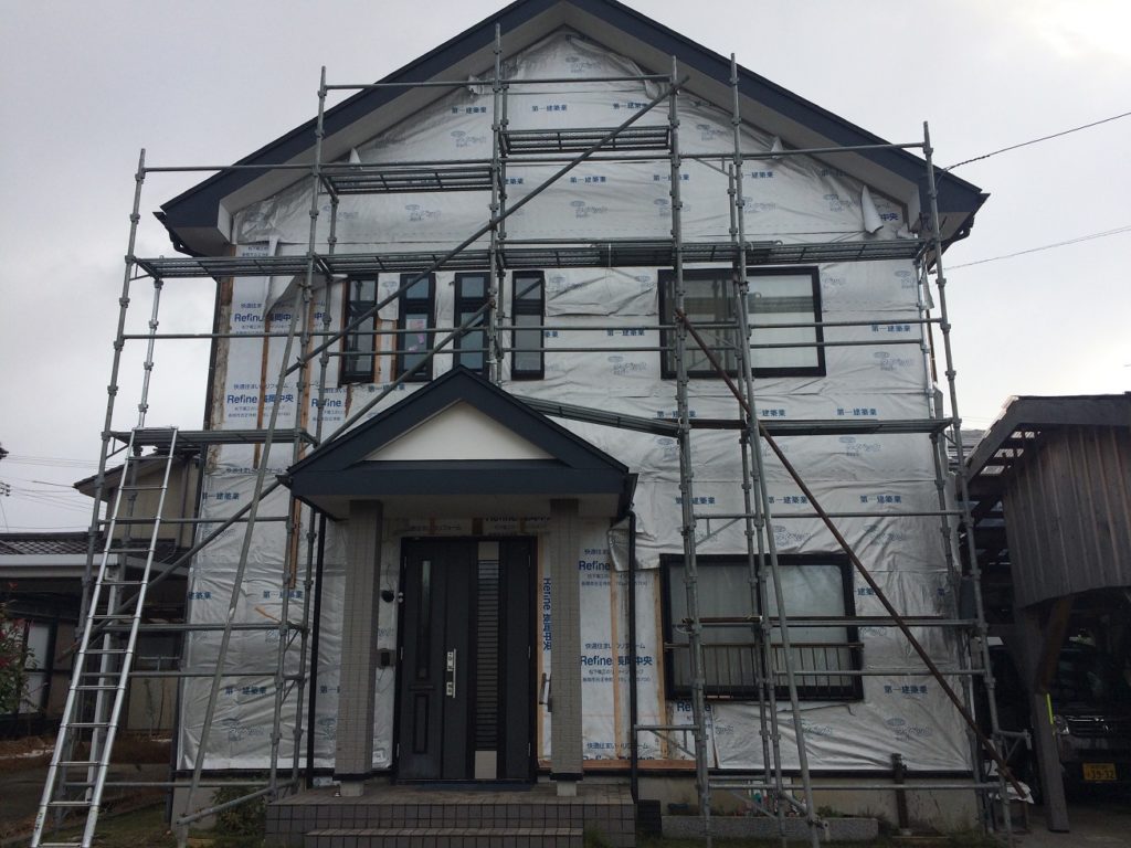 以前、外壁調査でご紹介したお宅の外壁張替工事が始まっておりました!