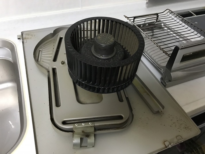 油部分はアルカリ洗剤、シロッコファンは中性洗剤を使用してもらいます。