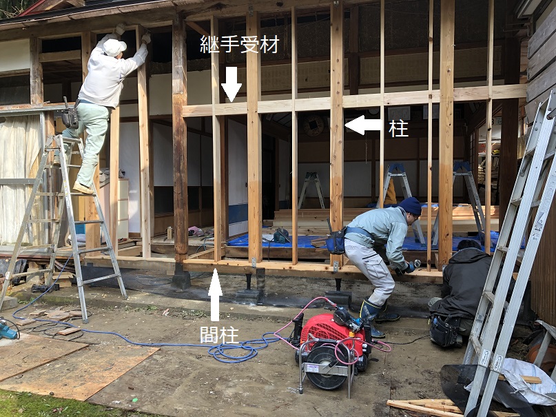 真ん中の柱は既存の柱を使用し、その他の材料は新規に取り付けました。