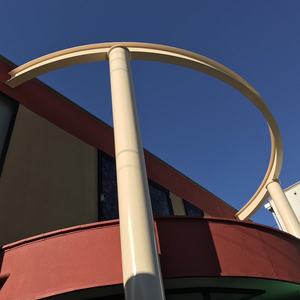 曲線の工作物で、足場を立てると日程的に作業できないので、高所作業車を用意しました。