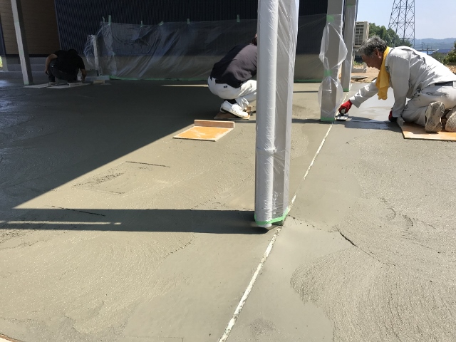 職人さんもコンクリートの状況に合わせて押さえてきます。
