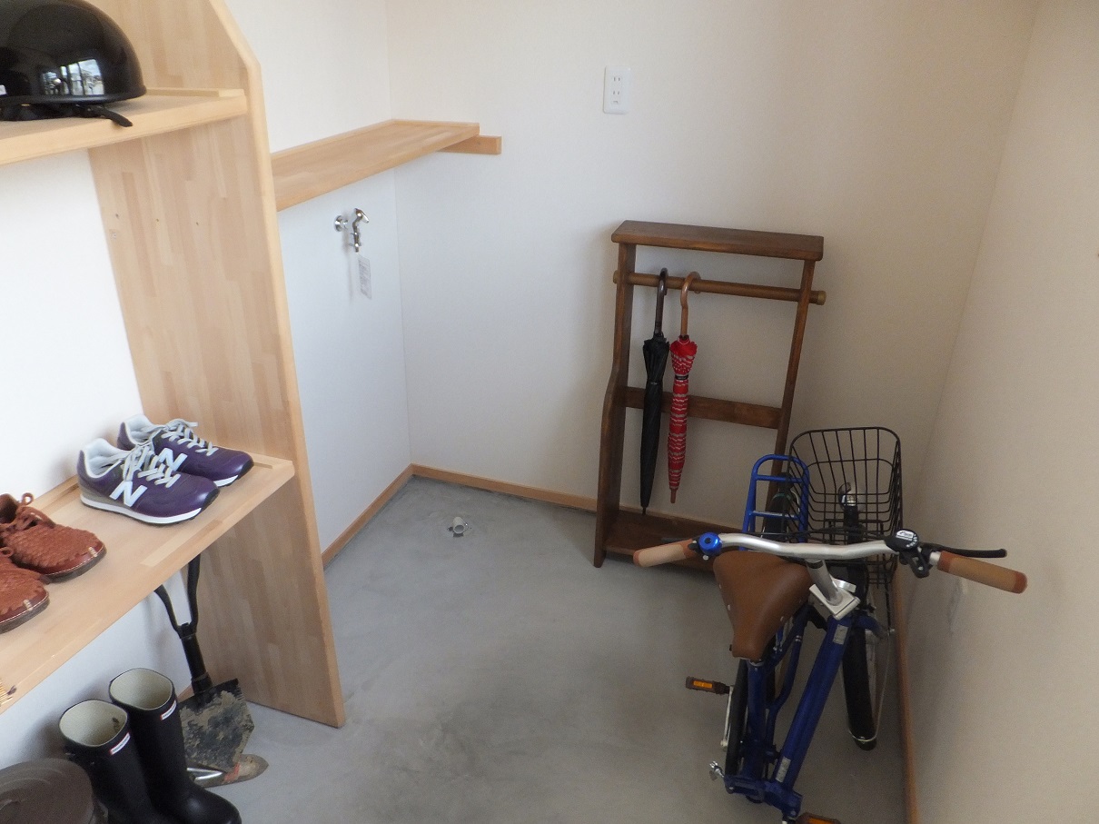・農作業用の工具が仕舞えるように、玄関脇に土間収納を